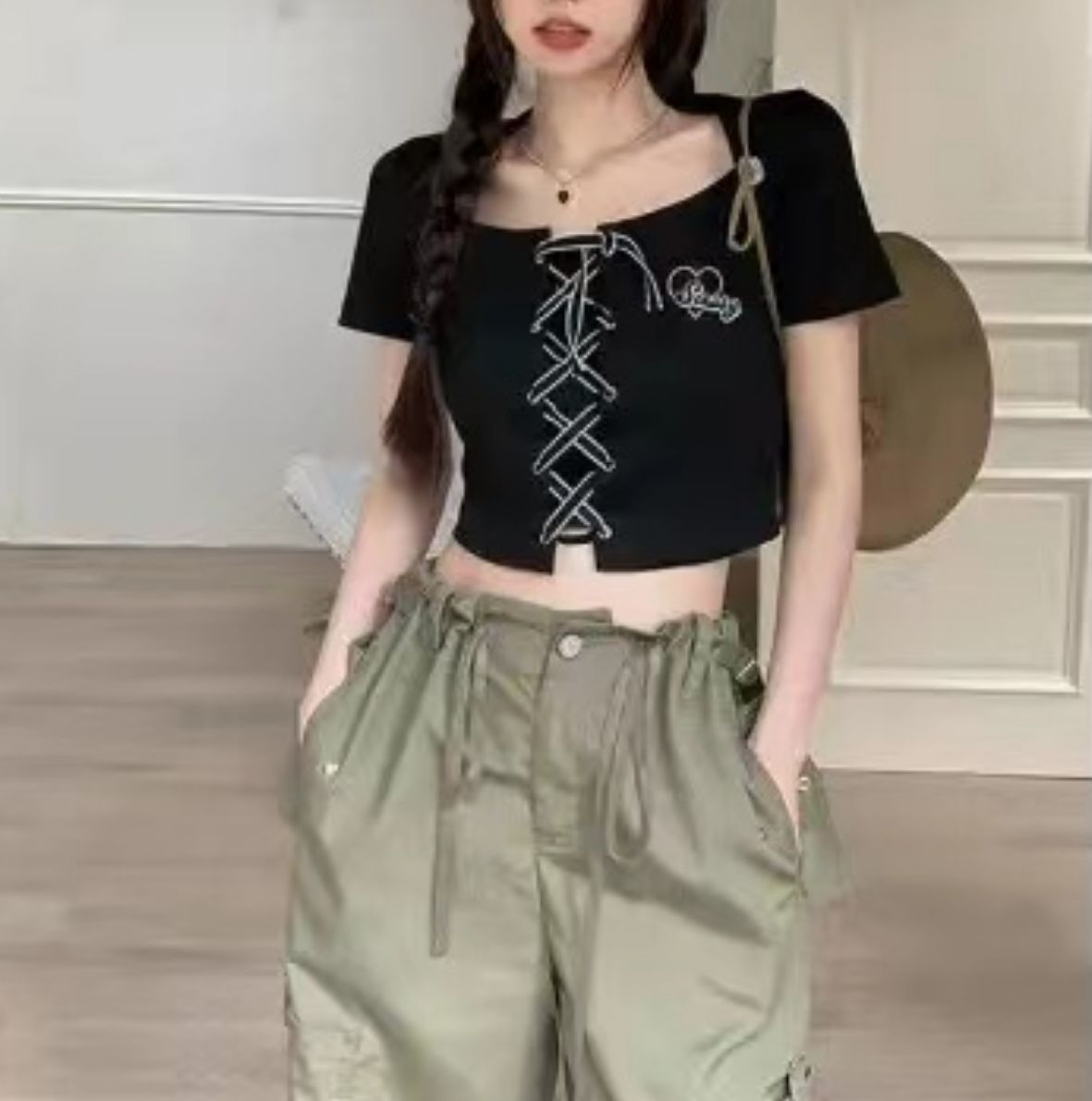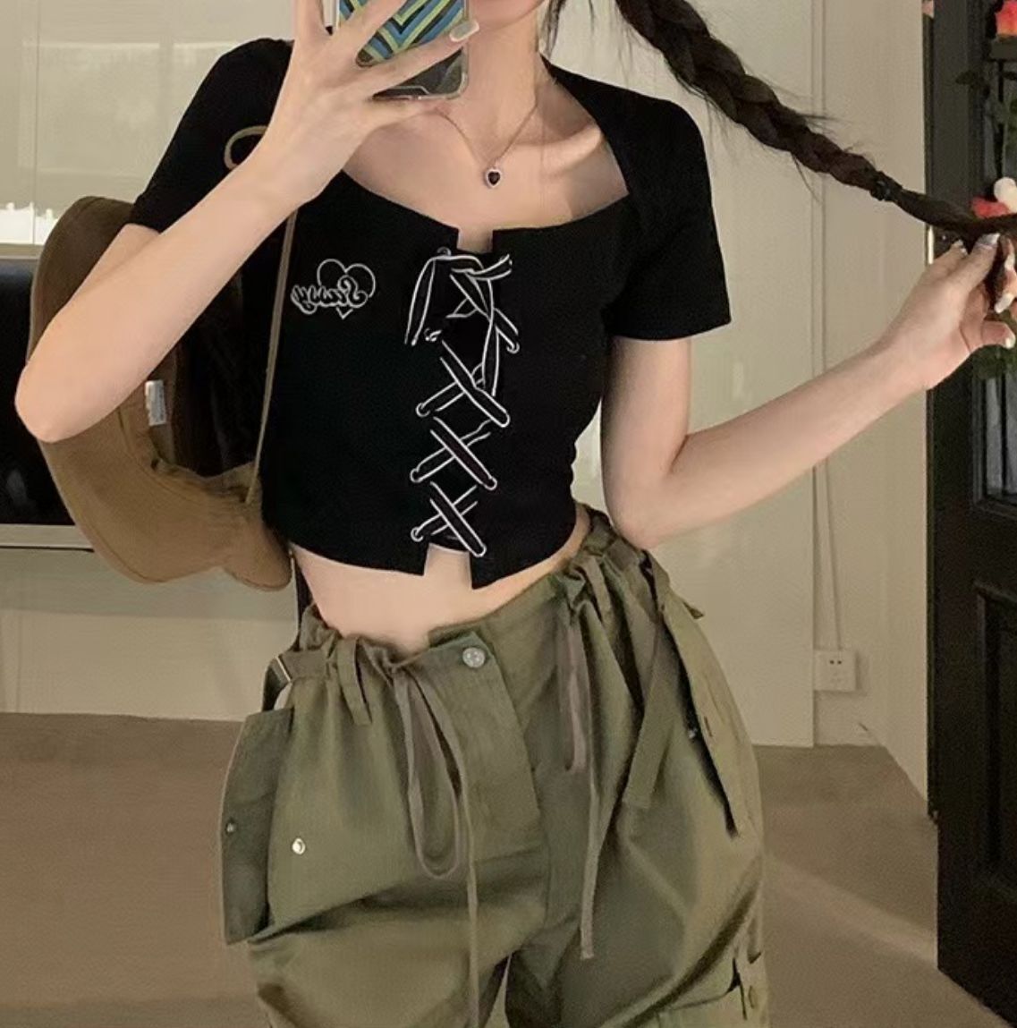 Tシャツ タイトタイプ ショート 半袖 韓国 エネルギー感